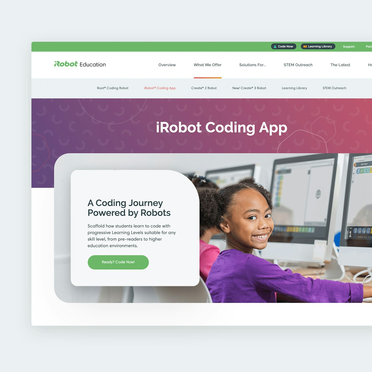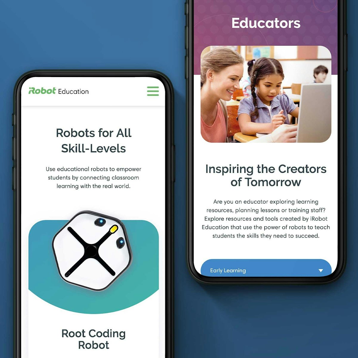 iRobot Educators visitors use many different display sizes to help them explore content and learn to code. iRobot Education leverages the most up-to-date web frameworks and design methodology to ensure content performs quickly and is widely accessible.